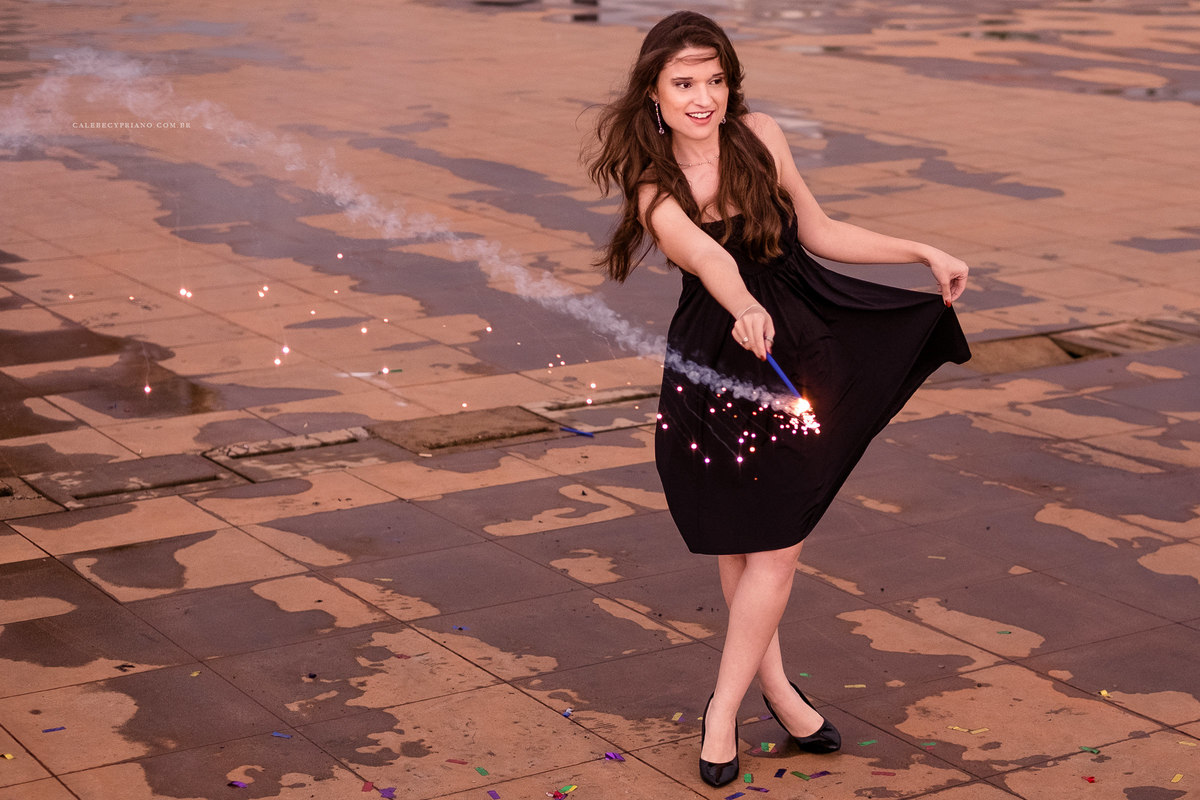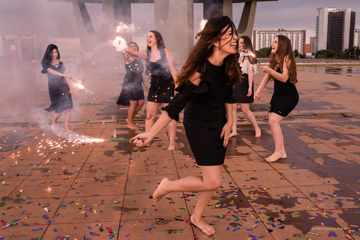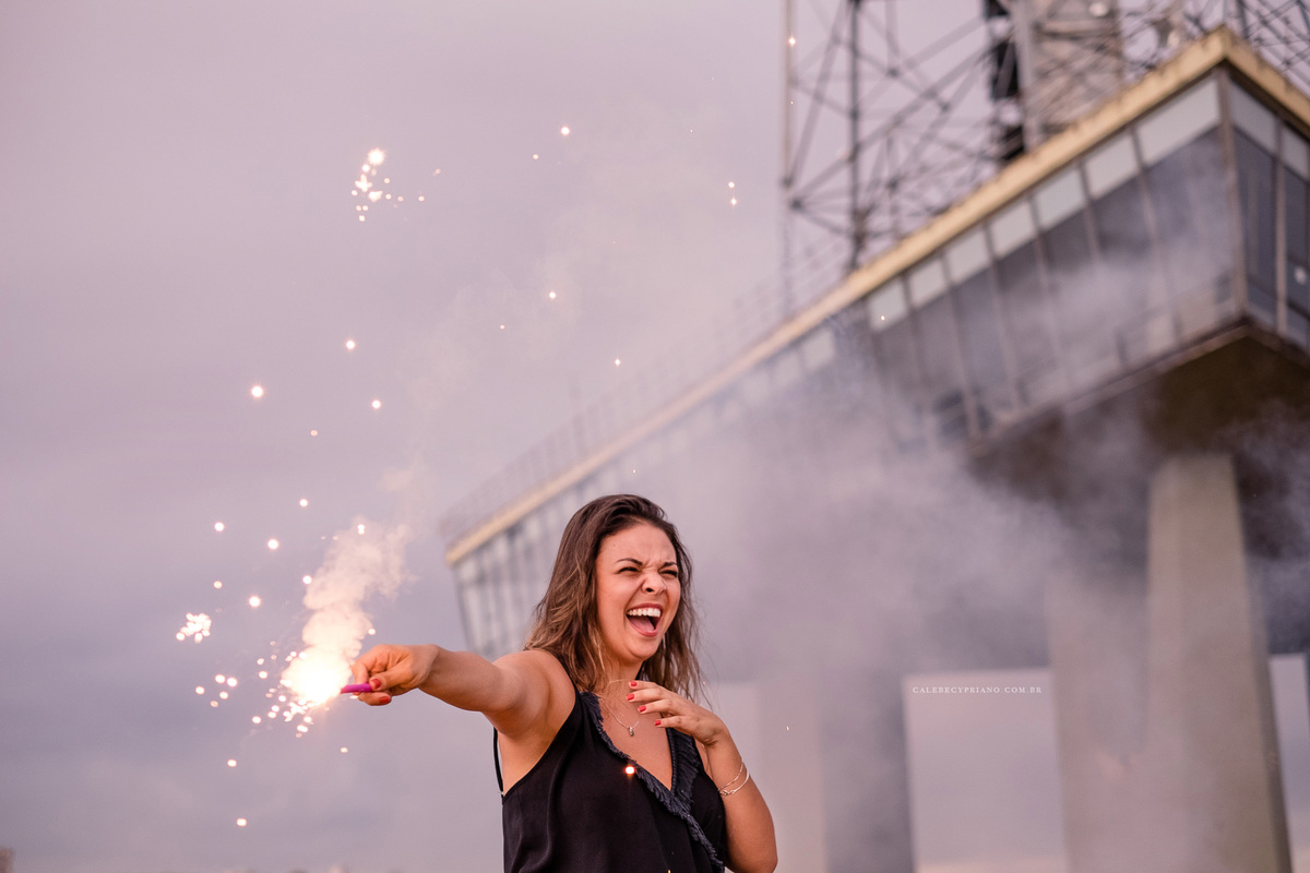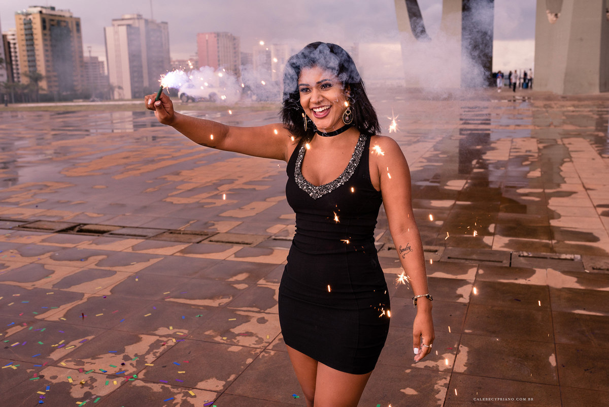 O segurança da Torre de TV, incrivelmente, liberou nossa entrada até o mezanino. Como foi algo exclusivo, acabamos conseguindo fotos bem legais. Logo depois, descemos, ligamos os fogos, estouramos os confetes, e finalizamos de uma forma super bacana, garantindo que esse fosse um ensaio incrível.